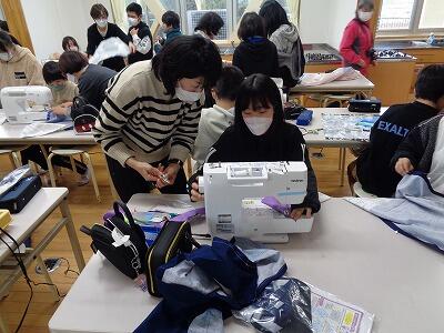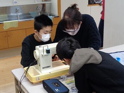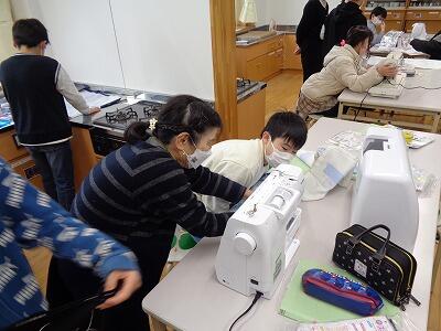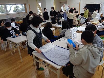 5年生の家庭科の学習で、エプロンのミシン縫いを行いました。一人の先生では指導しきれないところを地域のボランティアの皆さんが一肌脱いでくださいました。おかげさまで、全員が作品を仕上げることができました。