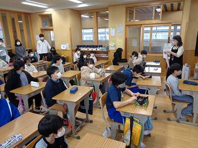 2月1日(水)に、来年度の新入生保護者説明会を行いました。5年生児童が、昇降口でおいでになった保護者の皆さんを会場まで案内してくれました。さすが5年生です。