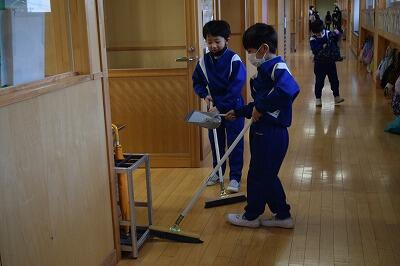 2月20日(月)の朝、児童の様子を見に校舎を回っていると、1年生のらんらんボランティアに出会いました。ホウキを上手に使って、校舎のゴミを掃いていました。だれにも言われずに、自分から働く姿って本当に美しいですね。