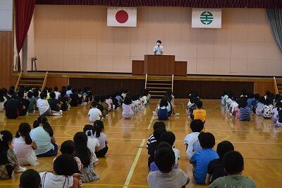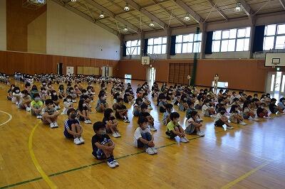 今日から85日間の第2学期が始まりました。子どもたちは、整然と体育館に入場し、落ち着いた態度で始業式に臨むことができました。