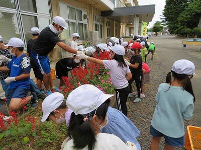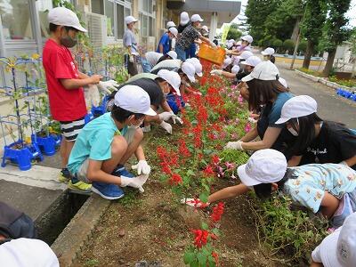 8月24日(水)に、全校児童でらんらんボランティアを行いました。内容は、花壇の除草です。学校の花壇がきれいになるように、みんな一生懸命作業に取り組みました。