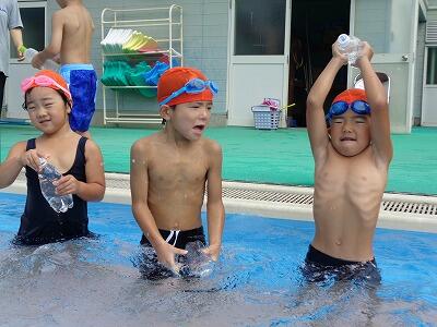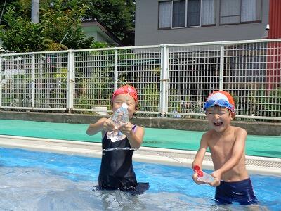 1年生が、8月23日(火)にプールで水鉄砲の学習をしました。水着を着ているので、濡れるのはおかまいなしで水鉄砲を楽しみました。