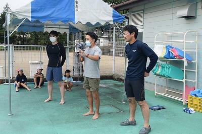 2022年8月31日 10時08分8月31日(水)の2時間目に、2年生が着衣泳を学びました。消防署から着衣泳研究会の3名が講師として来校し、指導していただきました。「着衣泳は服を着ておよぐことじゃないよ。浮いて助けを待つことだよ。」と教えていただきました。ありがとうございました。