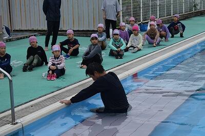 8月31日(水)の2時間目に、2年生が着衣泳を学びました。消防署から着衣泳研究会の3名が講師として来校し、指導していただきました。「着衣泳は服を着ておよぐことじゃないよ。浮いて助けを待つことだよ。」と教えていただきました。ありがとうございました。