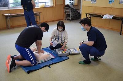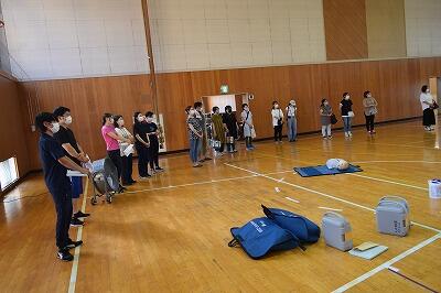 2022年7月12日 10時09分7月11日(月)に、1年生保護者と教職員を対象として、救命救急講習会を行いました。毎年、1年生の保護者の皆さんには、夏休みのプール監視をお願いしています。その際の緊急対応として講習会を行いましたが、たくさんの参加をいただきました。プールでの事故は、あってはならないものですが、事故が起きた際には、迅速で適切な対応が命を救うことになります。子どもたちの安全のために、ご参加くださいましてありがとうございました。また、矢吹消防署の皆さん、お世話になりました。