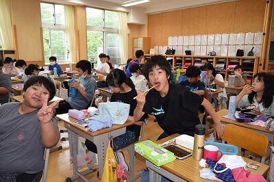 6月22日(水)、3時間目に2年生がプールに入りました。少し気温は低めでしたが、プールの水の中は温かい状態でした。ビート板でのバタ足も上手にできました。