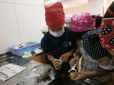 5月26日(木)に、5年生は、家庭科の学習で初めての調理実習を行いました。「青菜のおひたしとゆでいも」作りです。包丁でジャガイモの芽を取ったり、ピーラーで皮をむいたりしました。初めての包丁にドキドキしながらの活動でした。また、調理の合間に片付けをするなど、要領よく調理することも学びました。楽しく美味しい調理実習でした。きっと家庭でもやってみることと思います。