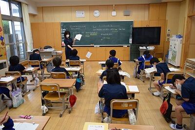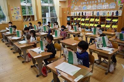 2022年5月31日 10時06分1年生教室では、1組が算数科、2組が国語科の学習をしていました。1組の算数科では、「式に書いて答えよう」の学習でした。ノートも丁寧に書けていました。2組の国語科では、「おばさんとおばあさん」の音読の学習をしていました。みんな上手に読めていました。