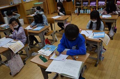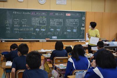 2年1組は、算数科の学習で、「繰り下がりのない2位数の引き算」の学習をしていました。早く終わった児童は、問題づくりに取り組んでいました。2組は,音楽科の学習で、「強さやはやさを感じて体を動かそう」の学習をしていました。音楽に合わせて、教室を自由に動きながら、体を動かしていました。