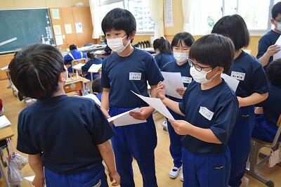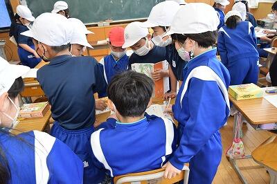 3年生は、国語科の学習で「言葉で遊ぼう」を学習していました。調べて分かったことを、友だちと教え合っていました。友だちと対話することで、理解が深まりますね。