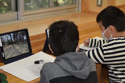 5年生は、理科で「植物の発芽の条件」を学習しています。発芽に必要な条件を、水、空気、土、温度などから調べる計画を話し合いました。6年生は、図工科で「春の風景画」を描いています。タブレットで撮影した写真を活用して、風景画に取り組んでいます。