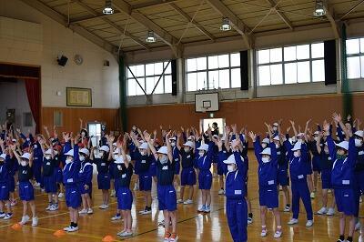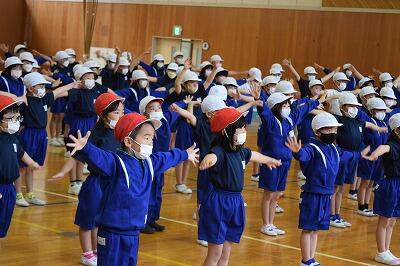 5月13日(金)に、第2回の運動会全体練習を行いました。今回は、ラジオ体操にも取り組みました。