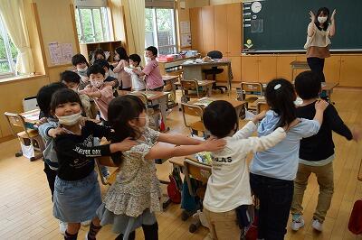 4月27日(水)に教室訪問をすると、こんな学習をしていました。1年1組は、音楽「かもつれっしゃ」の学習で、楽しそうに列になっていました。1年2組は、聴力検査が終わった児童から「粘土」を楽しんでいました。3年生は、図工「ふわふわ空気のつみ木」の学習で、空気のつみ木をつなげて楽しみました。