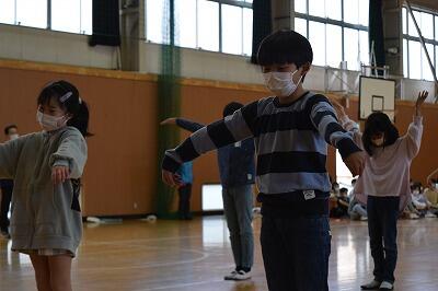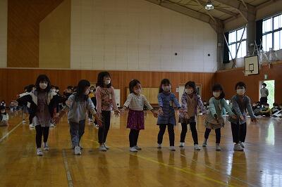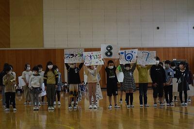 それから、学年ごとの発表が始まりました。2年生は、歓迎の替え歌を歌いました。困ったときは相談してね。助けてあげますというメッセージが贈られました。3年生は学校のクイズを行いました。学校のことがよく紹介されていました。4年生はダンスを披露しました。切れ味の良い、格好いいダンスでした。5年生は短縄を行いました。あや跳びや二重跳び、交差二重跳びなどを見て、1年生は「速い、すごい」などの声を上げていました。その間、6年生は、1年生にそっと寄り添っていました。期待通りの大歓迎の会に、6年生に手を引かれて退場する1年生は、スキップやジャンプをして大喜びで退場しました。2~6年生の皆さんからの素晴らしい贈り物でした。