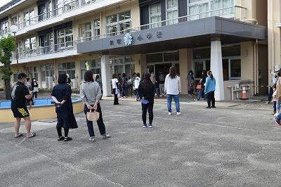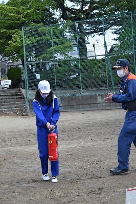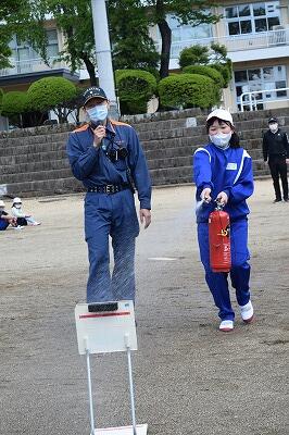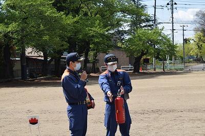 5月2日(月)に第1回避難訓練を行いました。今回の火災想定は、給食室が火元です。矢吹消防署長さん他、4名の署員の皆さんを講師にお招きし、避難の仕方、消火器の取扱い、火事が起きた場合の対応の仕方などを学びました。避難開始の指示から、避難完了まで3分48秒という短い時間で避難ができました。消防署長さんからは、「100点です」とお褒めの言葉をいただきました。避難完了後に、6年生代表児童と教職員で消火訓練を行いました。