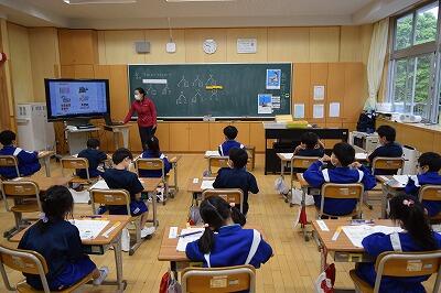 1年生は、算数科の学習で「いくつといくつ」の学習をしていました。1組は、「9は、いくつといくつ」2組は、「7は、いくつといくつ」でした。みんな良くできていました。