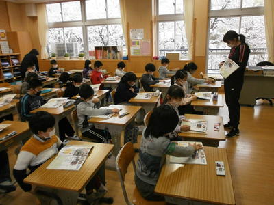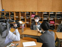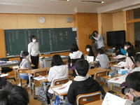 4月7日(火),始業式から一夜明け,今日は初めての授業の日です。そんな日に何と,テレビ局が取材に来ました。福島テレビ(FTV)です。最初は6年生の授業の様子を撮影しました。
