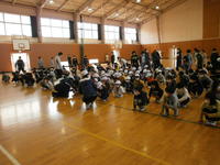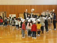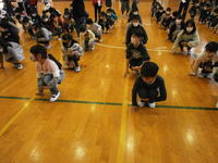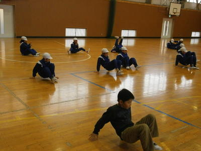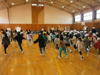 子どもたちが苦労したのは「腰をおろして休め」の動作でした。この後ゲームを行い,そのゲームの合間にお集まり訓練を挟むという形で練習しました。楽しく学び・楽しく遊ぶことができたようです。このハンドサインにより,素早い集団行動ができるようになることを期待しています。