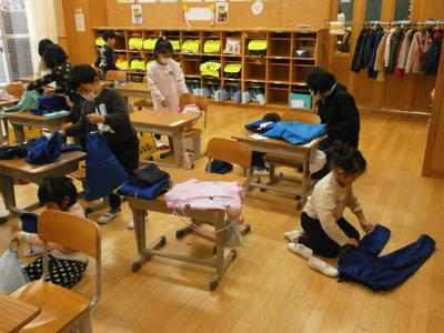 1年生はお着替え・お片付けの練習中