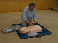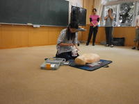 「プールで子どもがおぼれ意識不明」などといった事故が起きた場合,119番通報してから救急車が到着するまでに9~10分かかるそうです。そして,呼吸停止してから3~4分で,脳に障害が残るようになり,9~10分で死に至るとのことでした。つまり,救急車の到着を待っていたのでは,おぼれた子どもの命を救うことはできないということになります。救急車が到着するまでの間に,その場に居合わせた大人が行わなければならないのが,心臓マッサージとAEDによる処置です。本校では例年1学年の保護者の皆様にプール監視をお願いしております。万が一,このような場面に遭遇した場合に,的確な対処をしていただけるようにということで,この講習会を毎年夏休みの初めに実施しています。参加していただいた保護者の皆様は以下のとおりです。