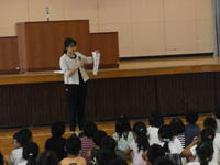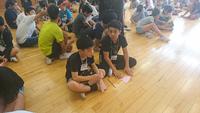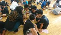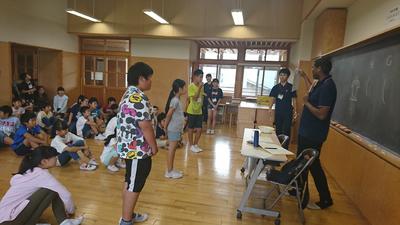 7月25日(木),矢吹中学校で町内の小学6年生を対象にした「英語交流会」が行われました。矢吹町教育委員会のALTエイシャ先生,ジーナ先生,テラ先生,リード先生の4人が中心になって指導してくださいました。矢吹小学校からは39人の6年生が参加し,4つの小学校の児童がシャッフルされたA~Hの8つのグループに分かれて活動しました。3つの活動が準備されており,子どもたちは場所を変えて,それぞれの活動に取り組みました。