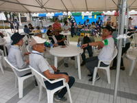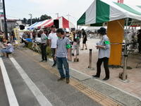 矢吹小学校に集合し,まずはポケットパークに向かいます。午後2:00すぎ,ポケットパークでは主催者によるあいさつが行われ,出店は多くのお客さんで賑わっていました。矢吹中学校の生徒さんや善郷小学校の子ども達は多く見かけるのですが,不思議と矢吹小学校の子ども達はあまり多くは来ていないようでした。もう少し遅い時間に来るのかもしれません。感心したのは来場したお客さま方のマナーです。特にゴミの始末を丁寧に行う姿が目に付きました。