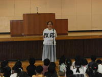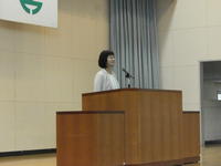 始業式終了後,生徒指導の渡部美佳先生からは①語先後礼,②凡事徹底,③あいさつ名人についてのお話,加藤彰子先生からは①返事,②(問いかけに対する)反応,③(ていねいな)字についてのお話がありました。