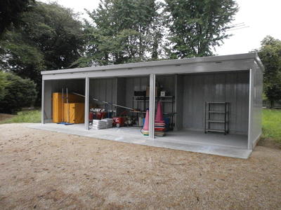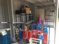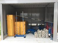 昨年度,老朽化によって取り壊した体育倉庫に代わる新しい体育倉庫が遂に完成しました。場所は校庭西側,調理室南側の法面を下ったところです。横長のつくりで,3つのシャッターを開け閉めして使います。8月21日(水)の委員会活動の時間に,運動委員会のみんなで体育関係の物品を運び入れました。末永く,大切に使ってほしいと思います。