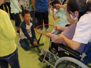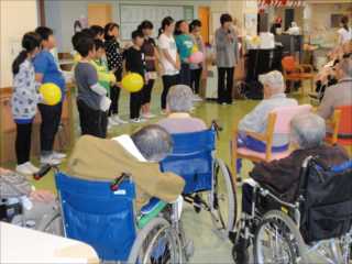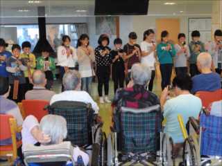 10月17日(火)に、児童会「環境・ボランティア委員会」の子ども達18名が、毎年恒例となっている寿光園でのボランティア活動を行いました。「聖者の行進」のリコーダー奏を披露したり、入所者の皆さんと一緒に「ふるさと」の合唱をしたり、輪投げなどのゲームを楽しんだりしました。子ども達は、寿光園の皆さんに楽しんでもらおうと、6年生の委員を中心に、演奏の練習やゲームの準備に一生懸命に取り組んできました。そうした子ども達の思いのこもった活動は、入所者の皆さんにとても喜んでいただくことができました。