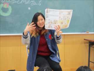 ALTのエミリー先生に『スノーマン』の絵本を英語で読み聞かせていただき