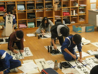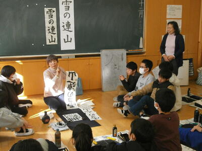 今日は、書写ボランティアの先生をお招きして書き初め展の作品作りを行う日でした。今年最後は6年生。『雪の連山』を仕上げます。