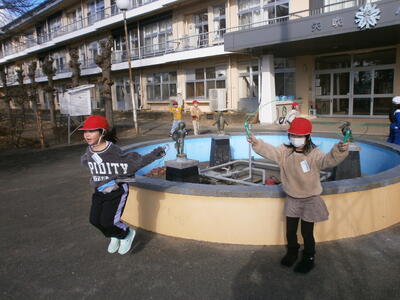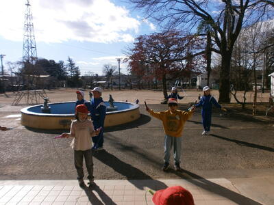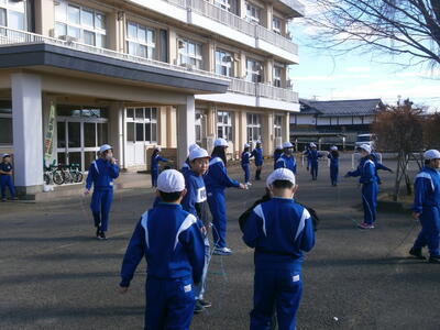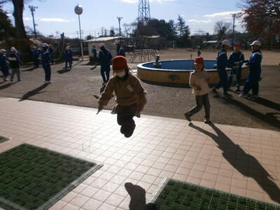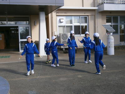 1年生だけではなく、3年、5年を中心にたくさんの子どもたちがなわとびをしていました。ぜひ、体力向上もできるなわとびに進んで取り組んでいきましょう。
