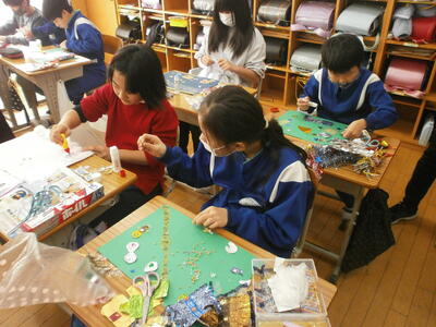 4年生は、図工の「キラキラワールド」の学習をしていました。