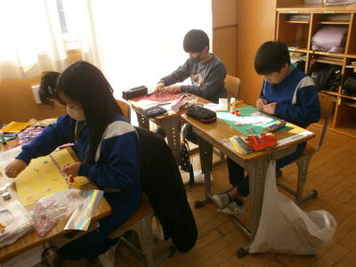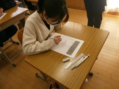 それぞれワークシートに学んだことを書きながら、今日の学習を振り返ります。