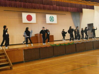 今日の業間の時間に、ダンスクラブ発表会が行われました。クラブ活動の時間に練習してきたダンスをみんなの前で発表します。
