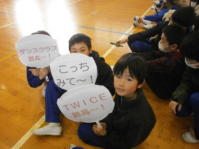 体育館には、たくさんの子どもたちが応援に集まってくれました。5年生はペンライトならぬサインペンライト!?や応援うちわも持参。ダンスクラブを盛り上げていました。