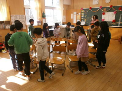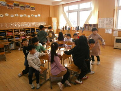 なかよく穏やかにいす取りゲームをしていました。そこが2年生の良いところです。楽しい時間が過ごせましたね。