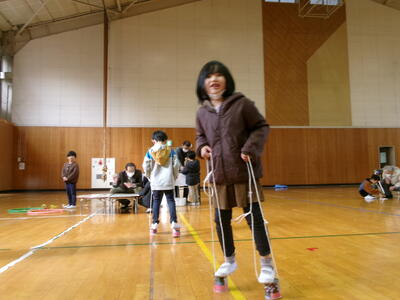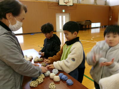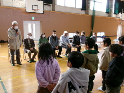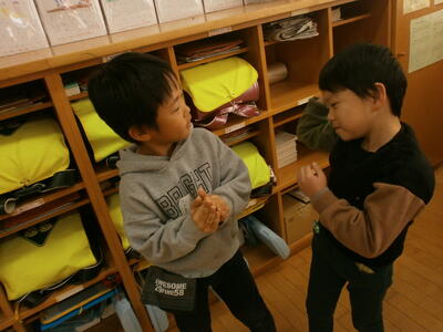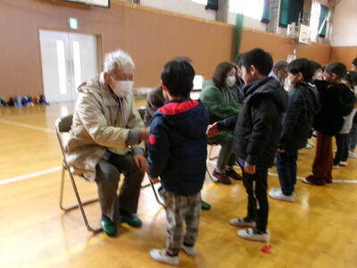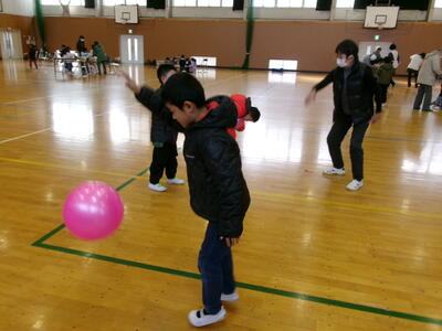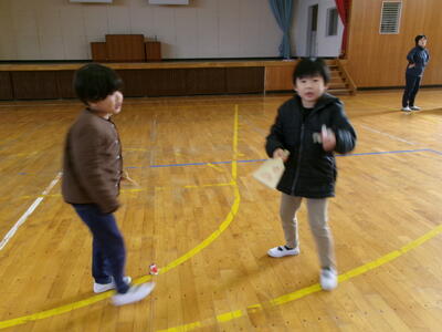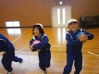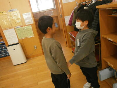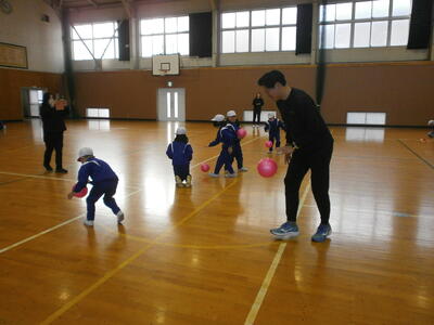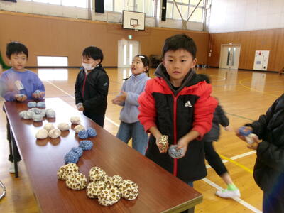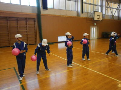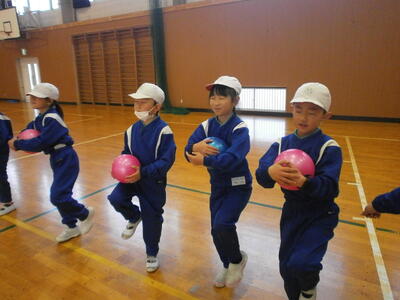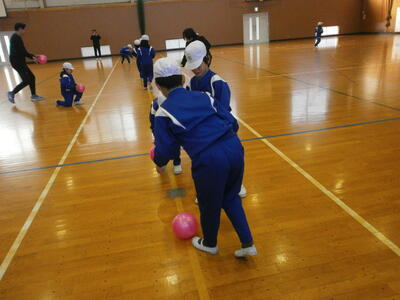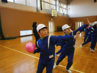 様々な動きを通して、寒い体育館でも身体はほかほかだったようです。楽しい体育の時間になりました。