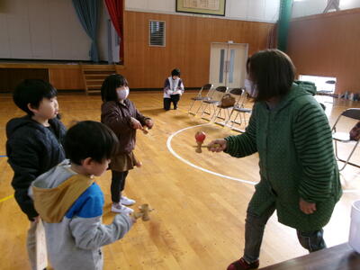 まずは、今日お手伝いいただく皆様から自己紹介をいただきました。そして、昔遊びスタート!!