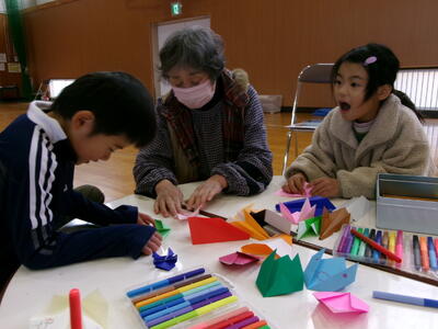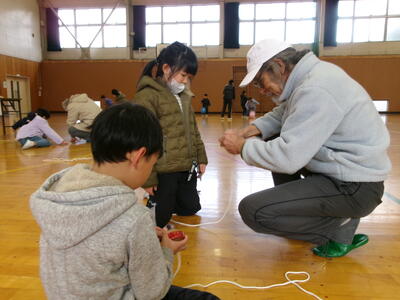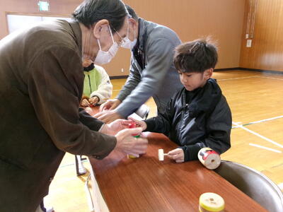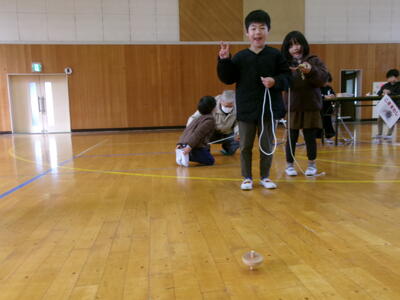 今日は、地域ボランティア(ふれっしゅすてーじ)の皆様にご協力いただきながら、1年生の生活科の学習である「昔遊び」を楽しむ時間を実施しました。