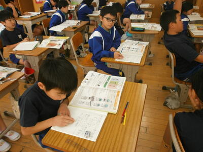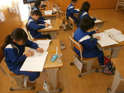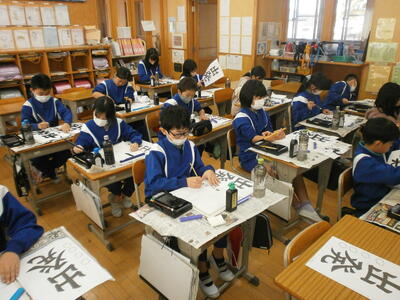 筆と紙に真剣に向き合い文字を書く子どもたちの姿が見られました。毛筆の準備や片付けもスムーズにできるようになりました。さすが4年生です。