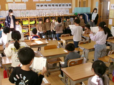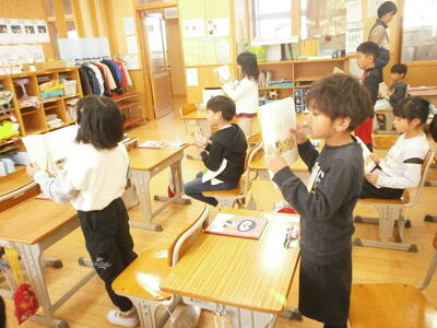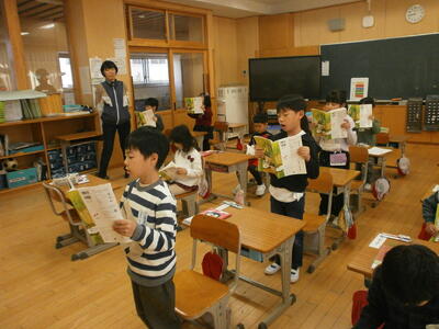 1年1組では、国語の学習で「自動車くらべ」の音読をしていました。