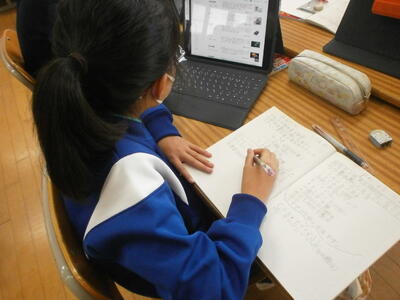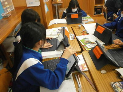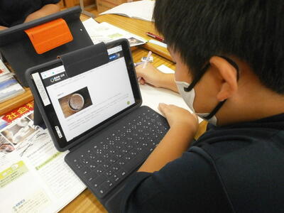 5年生が社会科の学習で、伝統工芸品を調べていました。