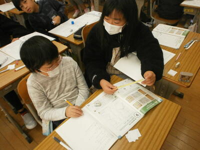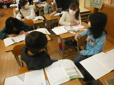 4年生が算数の学習で直線の交わりについて勉強していました。