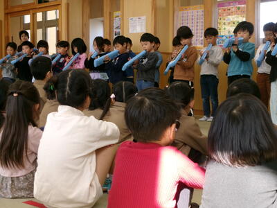 まず初めに1年生が鍵盤ハーモニカの演奏を披露しました。