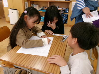 「パズルみたい」本当にそのとおりですね。読み取った内容を並べる様子はパズルみたいです。上手に国語のパズルができたかな。楽しく学ぶ1年生でした。