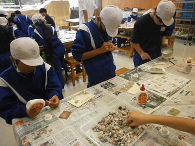 その後、貝の壁づくりをして、