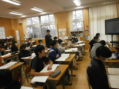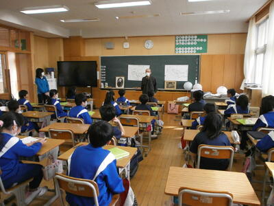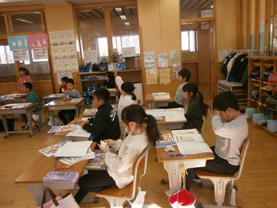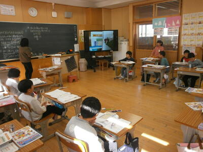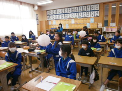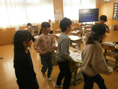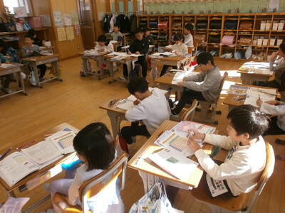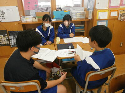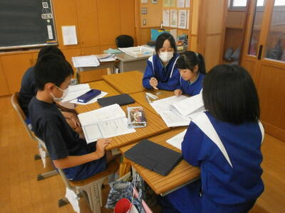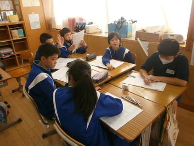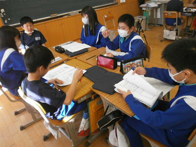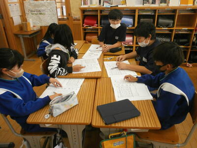 5年生教室では、班ごとに話し合いをしていました。