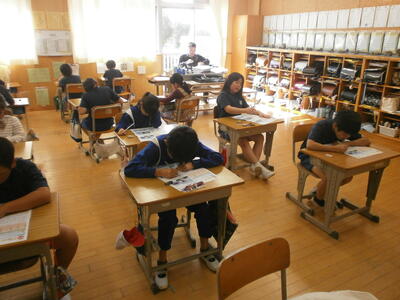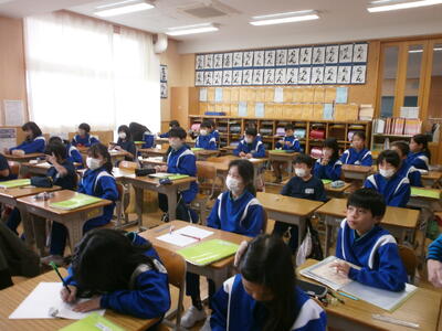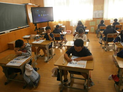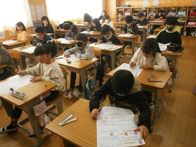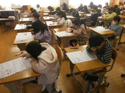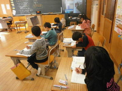 3年2組、4年教室で、単元テストに取り組む子どもたちの姿が見られました。