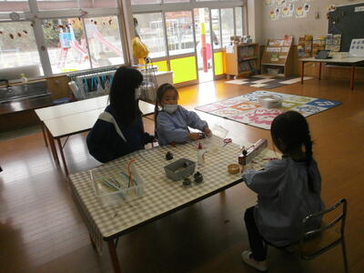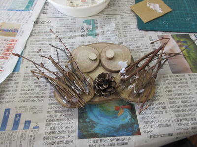 係の方の協力も得ながら、材料を組み合わせて作品を作りました。今日、家庭に持ち帰りましたのでぜひご覧ください。